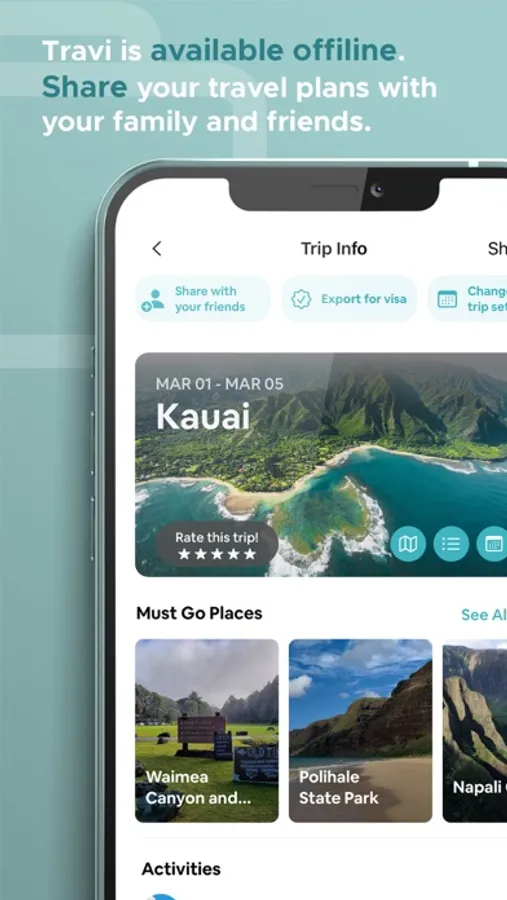 Traveling with a group? Share your itinerary with your family and friends, so they can see what you have planned for the trip.