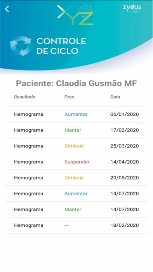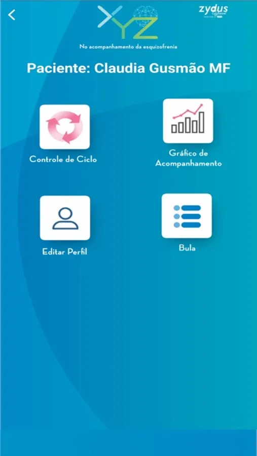 O XYZ é uma ferramenta para auxiliar médicos e pacientes no tratamento da esquizofrenia, contribuindo no procedimento da administração da medicação antipsicótico, acompanhamento do hemograma do paciente e exposição de gráficos com os resultados dos exames no decorrer do tratamento. Possui uma navegação fácil e intuitiva.