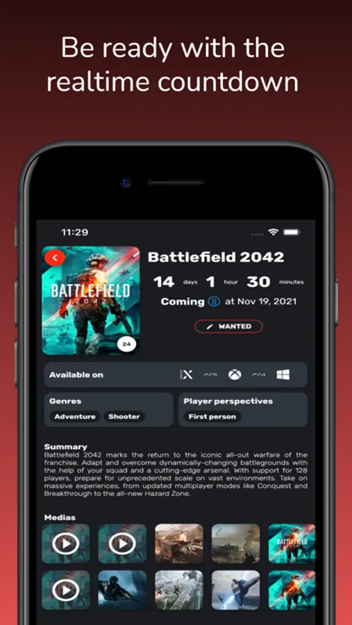 Be easily up to date on upcoming releases on any platform (PC, Xbox One, Xbox Series X, Playstation 4, Playstation 5, Switch, Stadia and even on smartphones)
