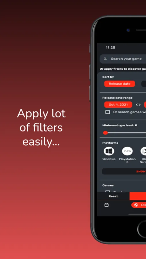 No need to search for hours for the next game that will make you vibrate. Search easily thanks to the filters according to your desires. Sort by release date, hype, platform, genre or even player perspective!