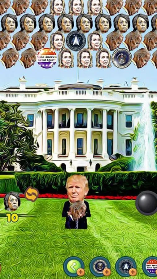 Standard bubble shooter with funny portrayals of US politicians. Have President Trump sling heads and free Flags while using special bubbles like Space Force, the Presidential Seal, a MAGA pin and others.