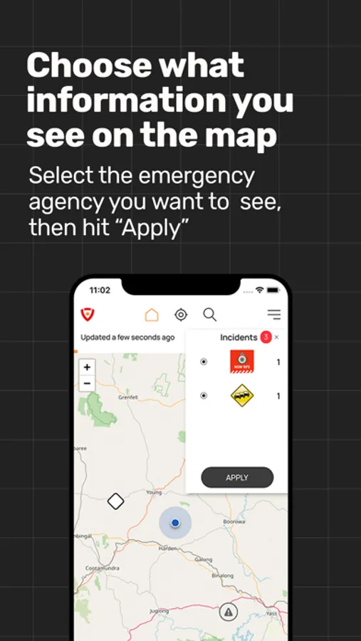 All available information is filtered to where you are. The app updates you with emergencies happening around your local area, or in the location of your choosing (works with all Australian states).