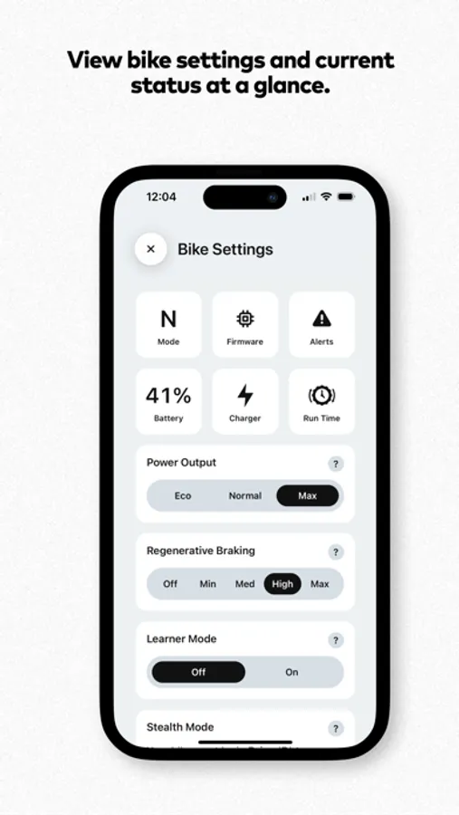 • Quick and easy Settings. Pick you preferred Power and Regenerative Braking level.