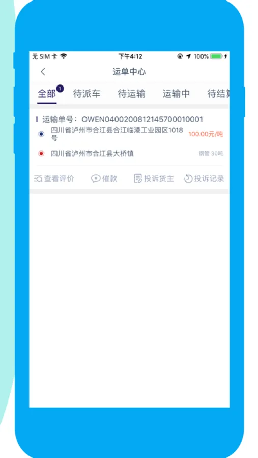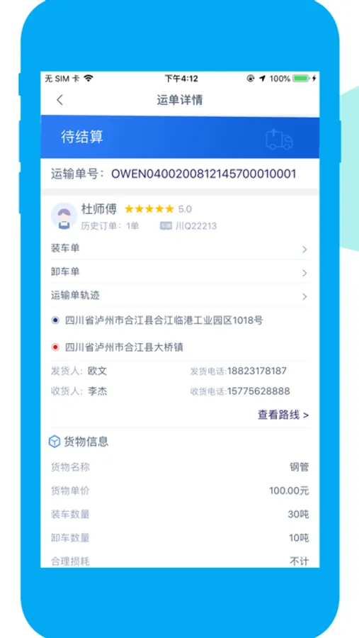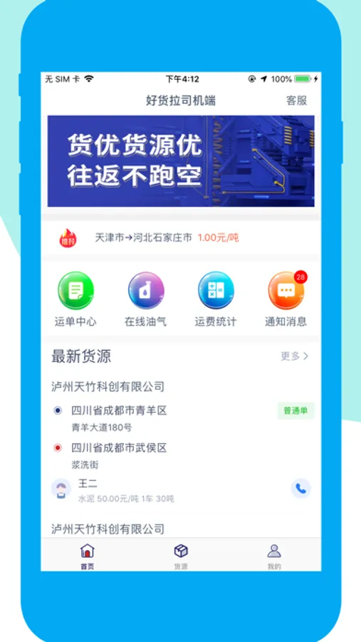 司机接收运输任务,执行装货操作上传装车照片,执行卸货操作上传电子回单,评价货主。