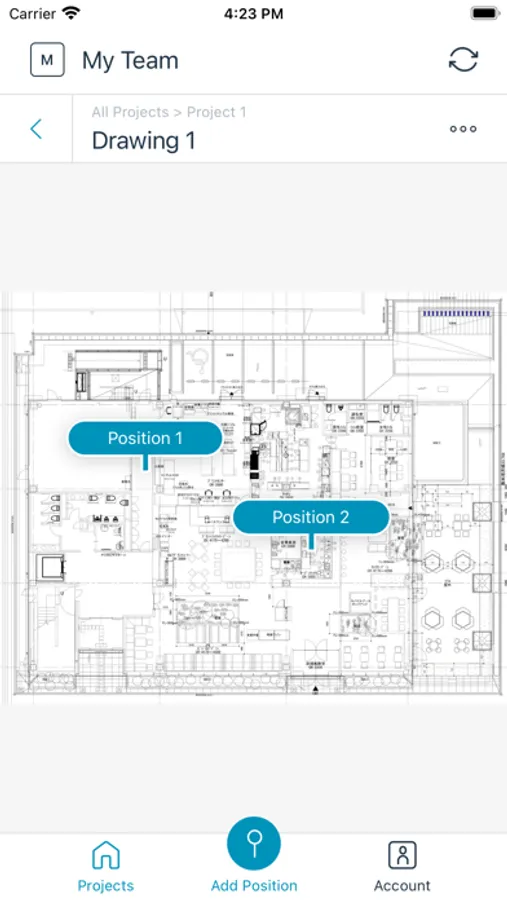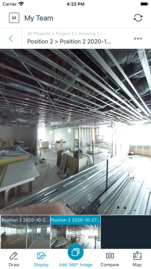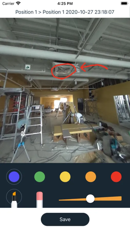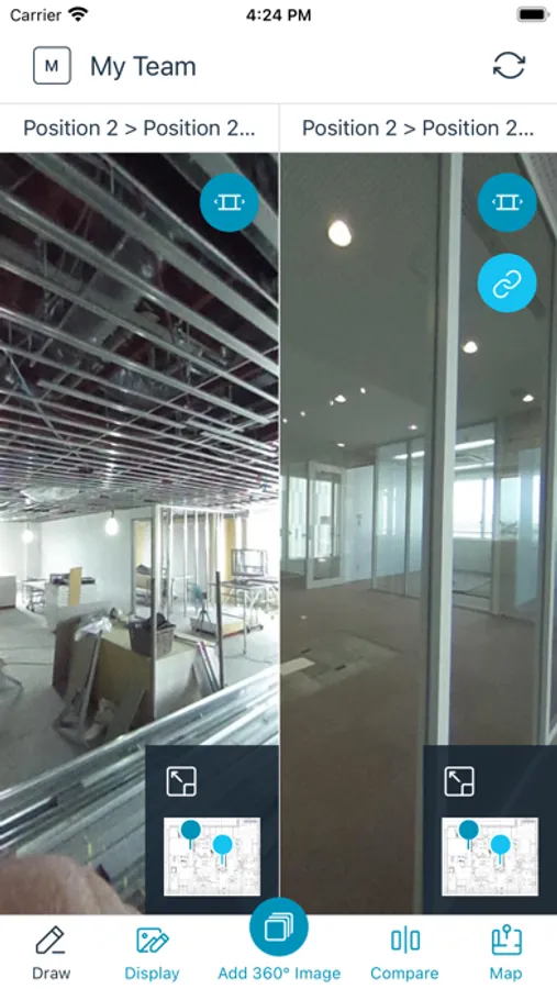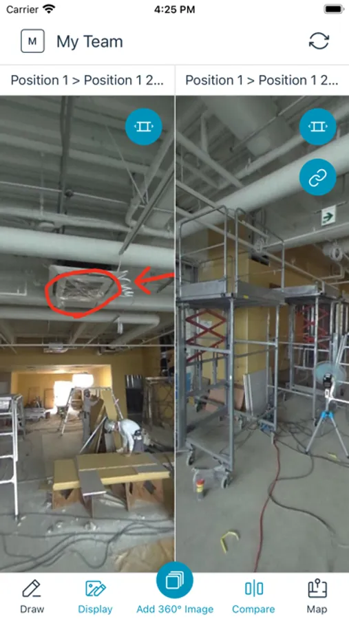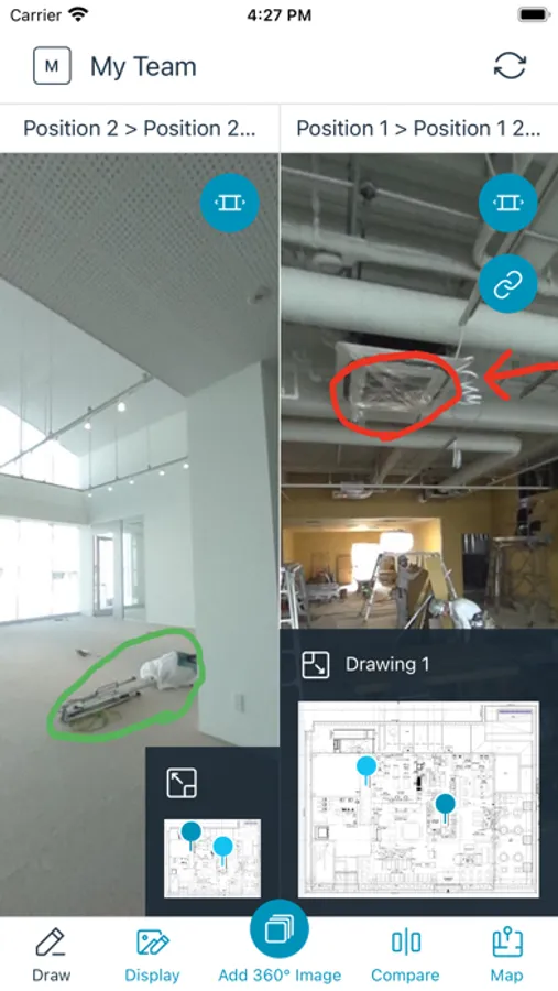 - Tap a location on the drawing and take a 360° image. Repeat this process throughout your site for 360° visual documentation