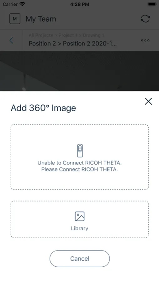 - Connect your 360° camera (RICOH THETA) to iPad