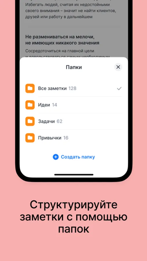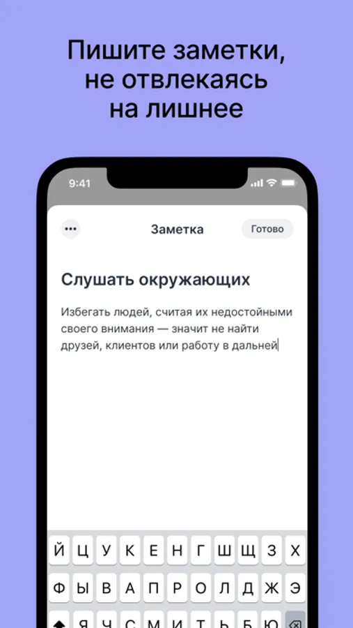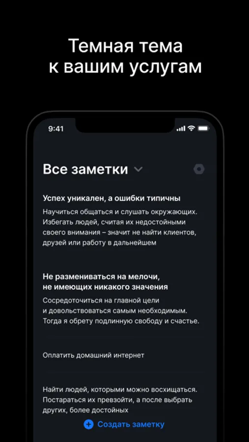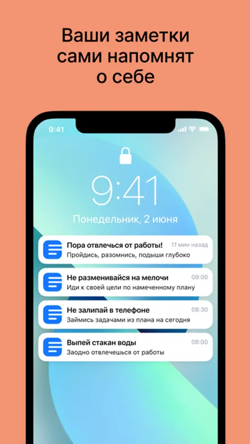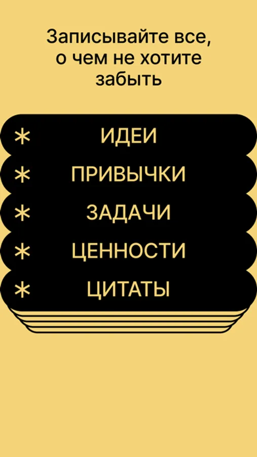 Приложение каждый день будет напоминать вам о ваших записях в виде пуш-уведомлений. Записывайте в него идеи, задачи, привычки, цитаты из книг и все то, о чем вы не хотели бы забыть.