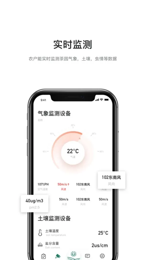 1.农户能实时监测茶园气象,土壤,虫情等数据;
