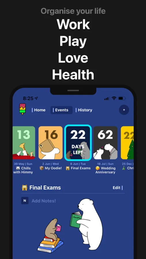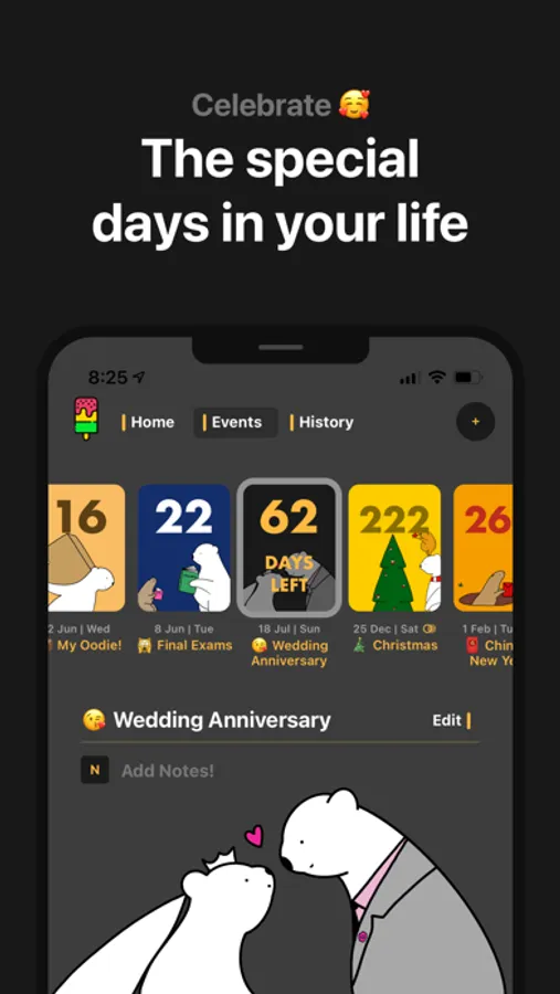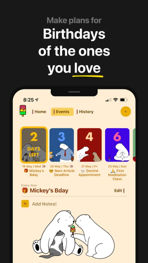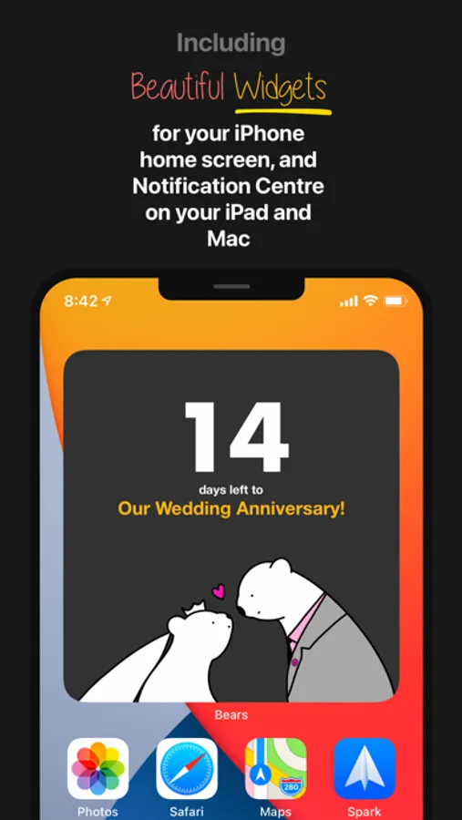 Bears Countdown is the most beautiful way to countdown to birthdays, anniversaries, vacations and even work deadlines! On iPhone, iPad and Mac.
