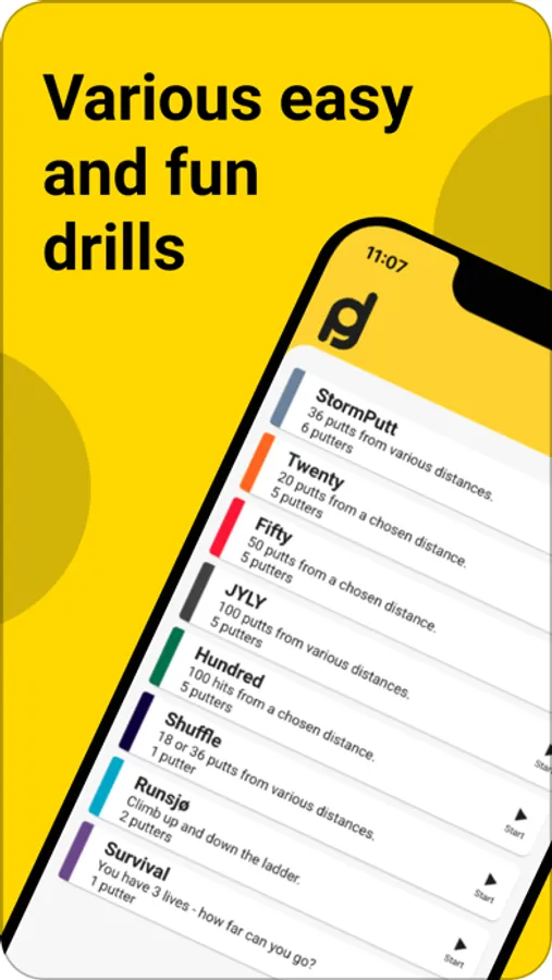 Welcome to dgputt, and a fun and effective putting practice . The app keeps track of your progress, and you will soon see your results improve.