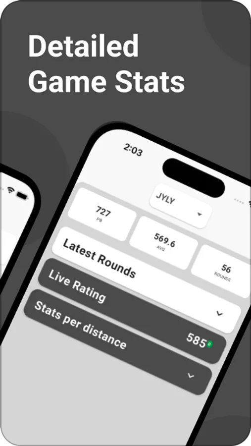 You can browse through all the games you have played. Stats showing the total number of putts, hit percentage, average score, and personal bests.