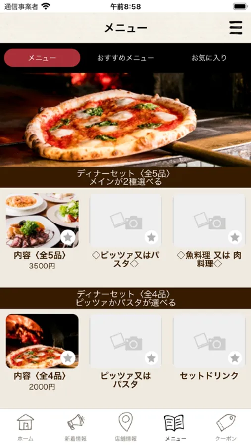 会員登録いただきますと、クーポン利用、お気に入りメニュー登録、利用店舗(お気に入り店舗)登録がご利用いただけます。