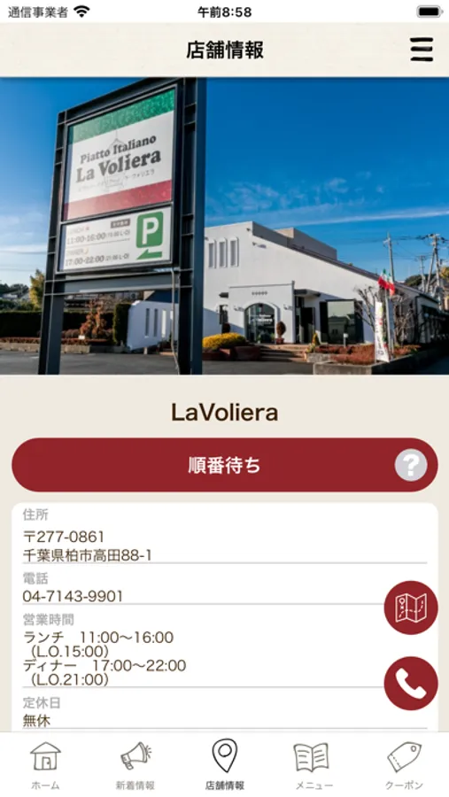 ピザとパスタとワインを楽しむラ・ヴォリエラの公式アプリです。
