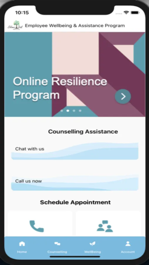 d. Book an Appointment: You can book a phone appointment with one of our counsellors or face to face counselling appointments at the counsellor’s offices or clinics using this app. Please check with your HR Managers if face to face counselling is covered in the plan.
