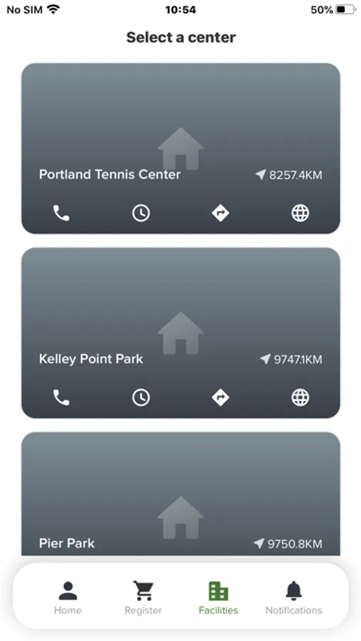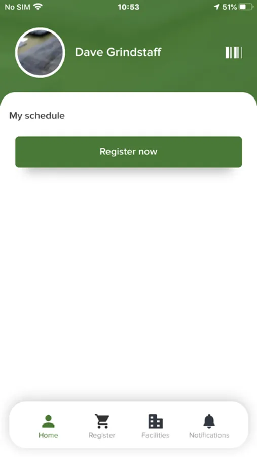 on the Home tab, view a center’s operating hours, manage your reservations and open your membership barcodes.