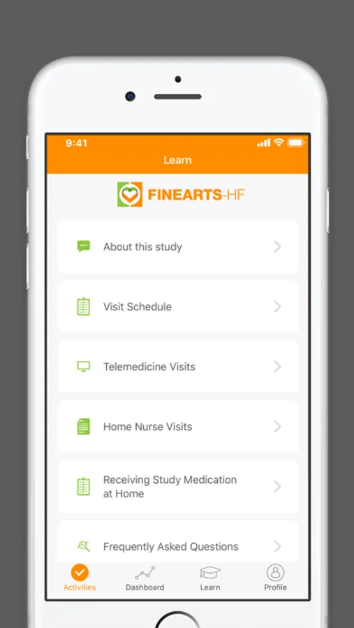 You will use this app to complete surveys & conduct Telehealth calls throughout your duration in the FINEARTS-HF Study.
