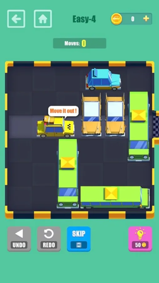 Move It Out is a kind of super funning puzzle game. You should try to open up your mind and find a way to move your car out. The car can move up and down, left and right to create a channel,let your car out.