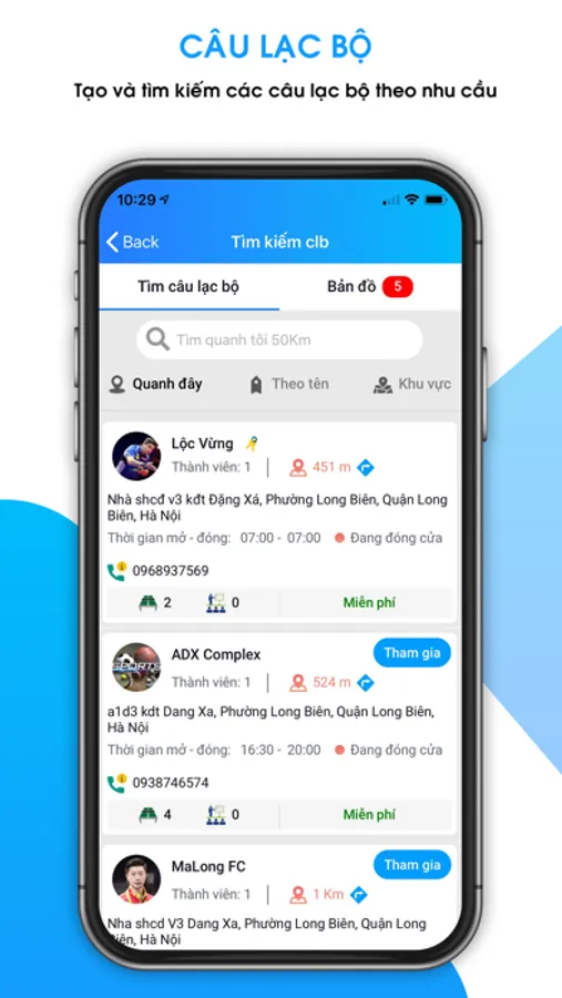 - Tạo, quản lý, gia nhập câu lạc bộ.