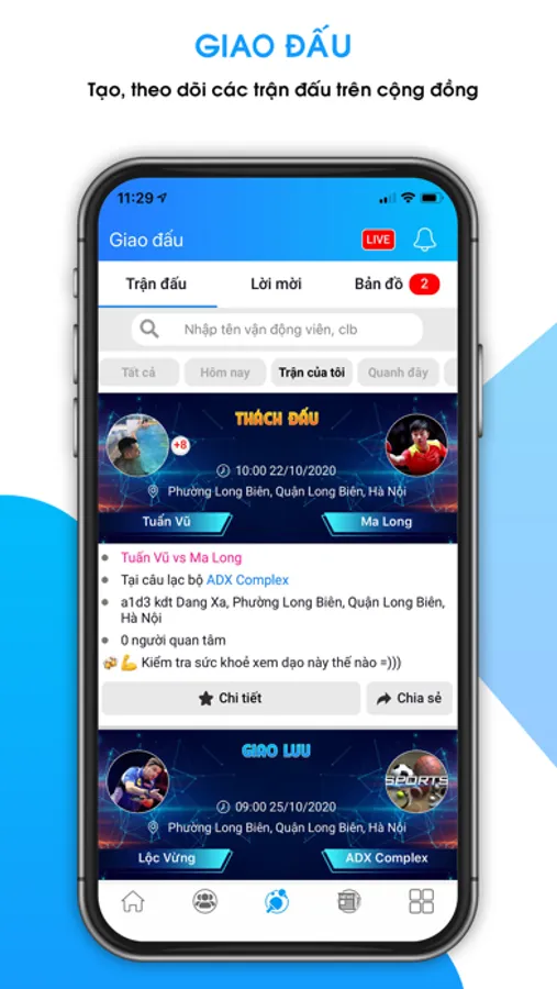 - Kết bạn, giao lưu, thách đấu giữa cá nhân, câu lạc bộ.
