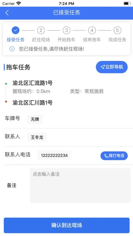 应用为救援公司内部与交警大队合作接单的app,交警发起任务,司机在线接受,更方便快捷