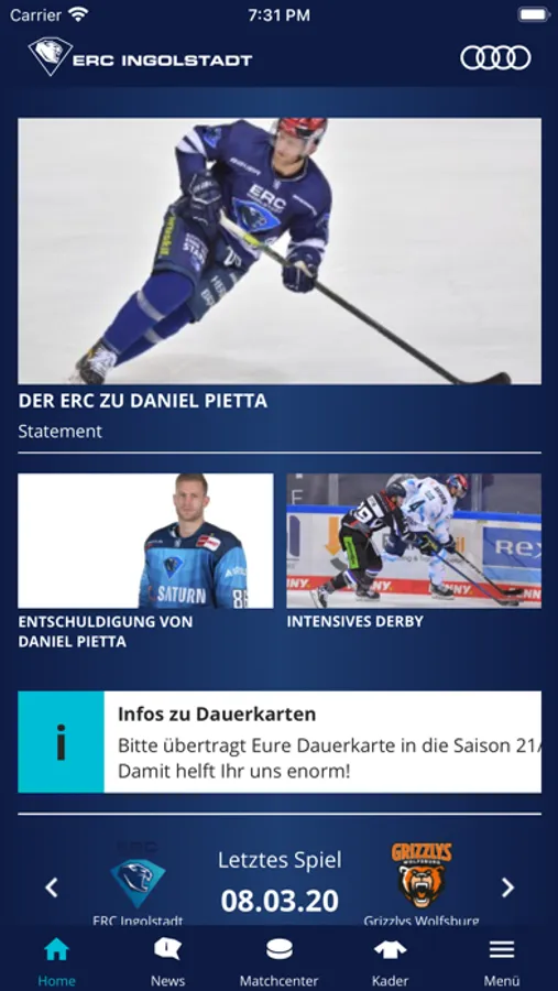 Aktuelle Informationen, Matchcenter, Liveticker und vieles mehr direkt aufs Handy – mit der offiziellen App des ERC Ingolstadt immer ganz nah dran an den Panthern.