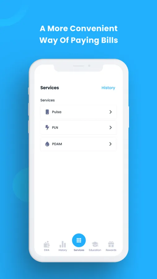 Paying electricity and water bills or top up mobile phone credit and electricity tokens becomes more practical and easier through the wagely app.