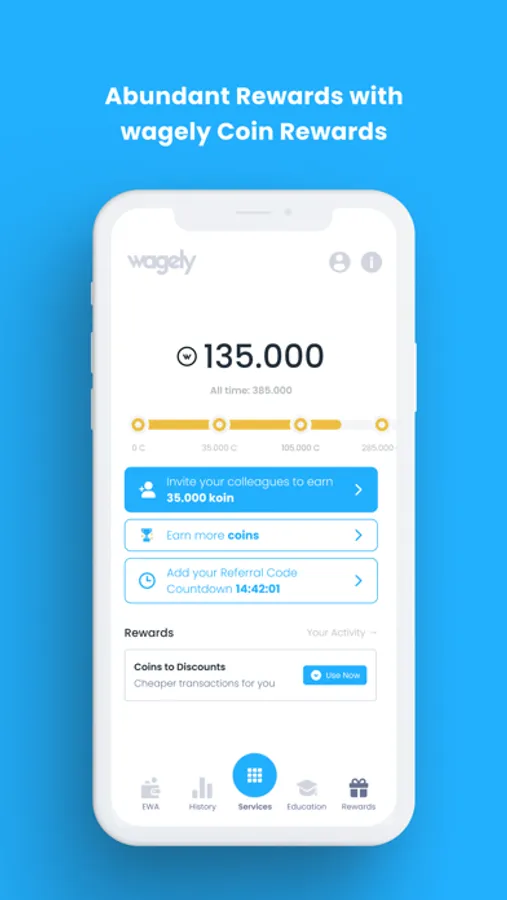Collect wagely coins to enjoy various rewards. You can refer your colleague to register or use your registered colleague’s referral code to get your wagely coin.
