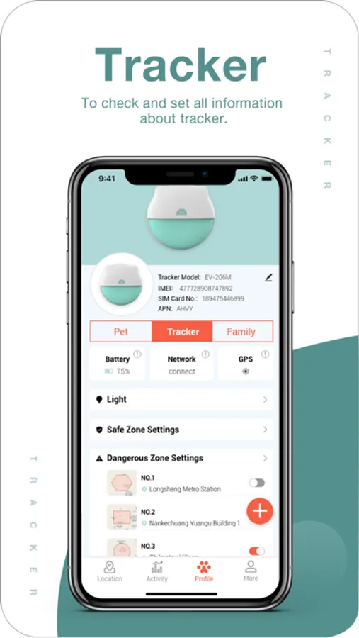 Explore this App to get ready with your smart pet trackers——following the steps to equip the tracker, to set the home, safe area and dangerous zones in your neighborhood, to receive notifications when your pet runs out of geo fences, to check the daily activity and routine of your pet, and to never lost it. Let's have a fun time!