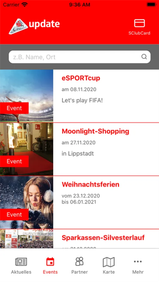 Hier präsentieren wir dir exklusive S-ClubVeranstaltungen und geben dir einen Überblick über Veranstaltungen aus unserer Region.