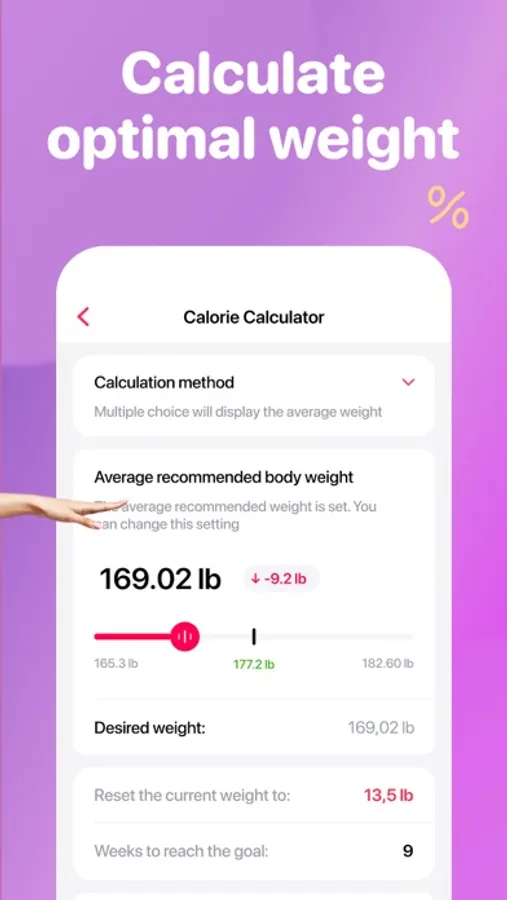 - Adjustment for goals: gain, hold or lose weight