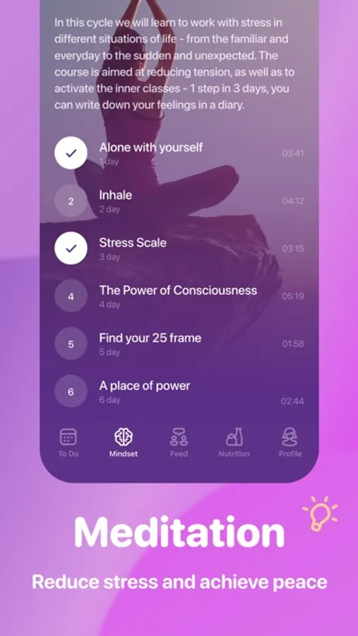 - Mindfulness at home: breathing practices, meditations and mindful eating techniques are suitable even for beginners
