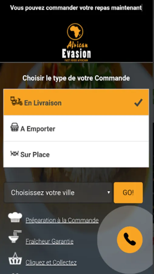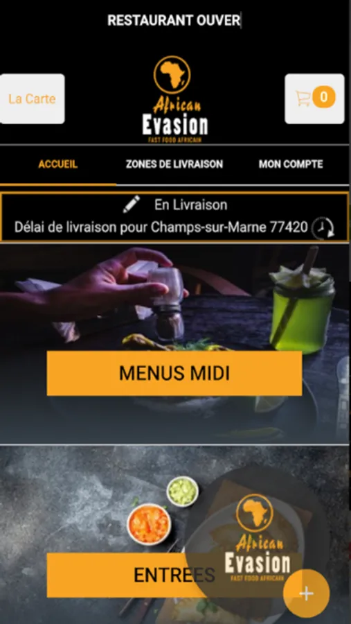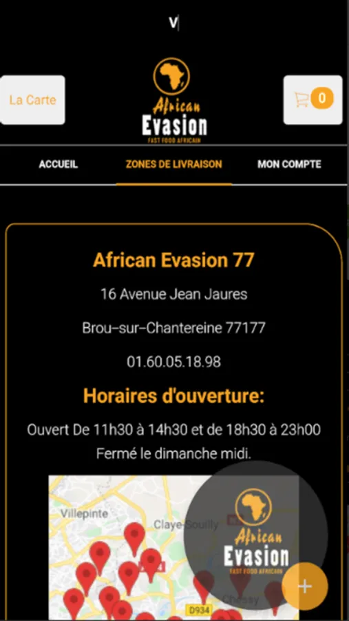 L'application African Evasion 77 vous permet de commander en ligne ou par téléphone via votre application . Vous pouvez consulter notre carte et choisir vos produits .