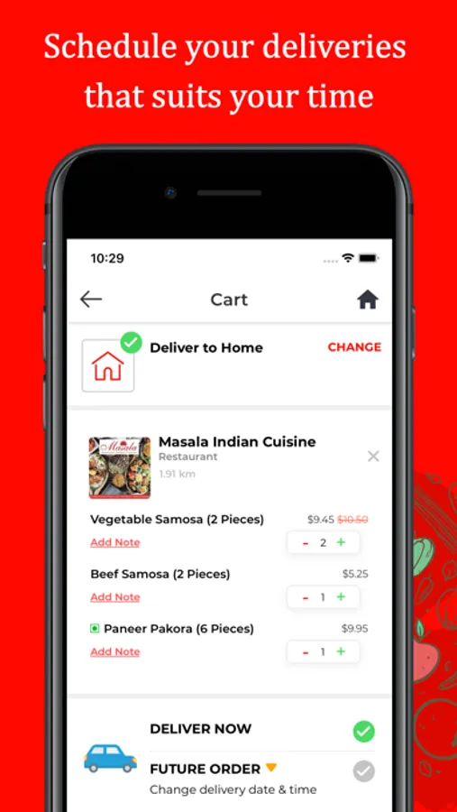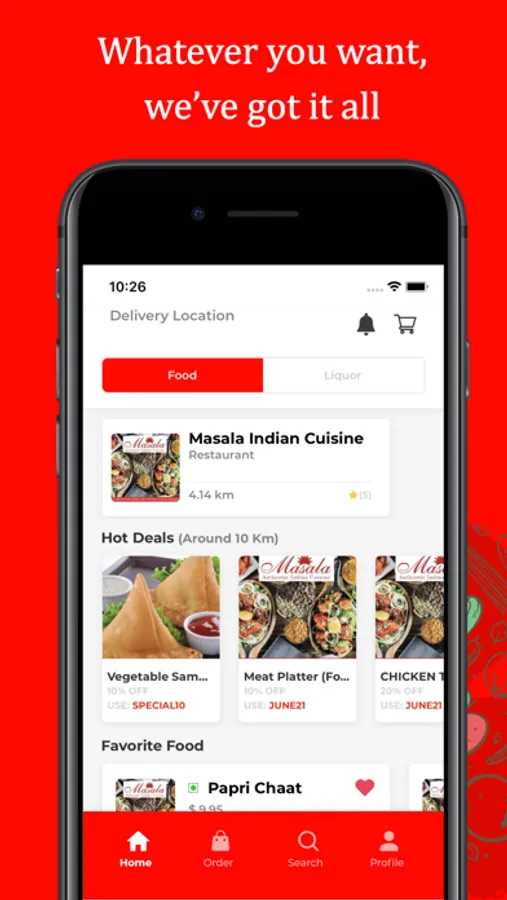 - Order from available different types of meals including Burgers, Fries, Butter Chicken, and Sushi , or get your favorite wine delivered.