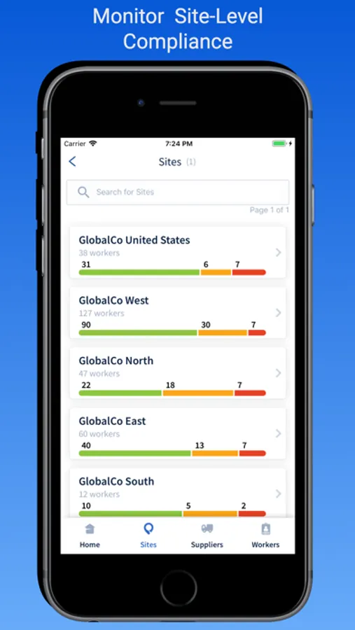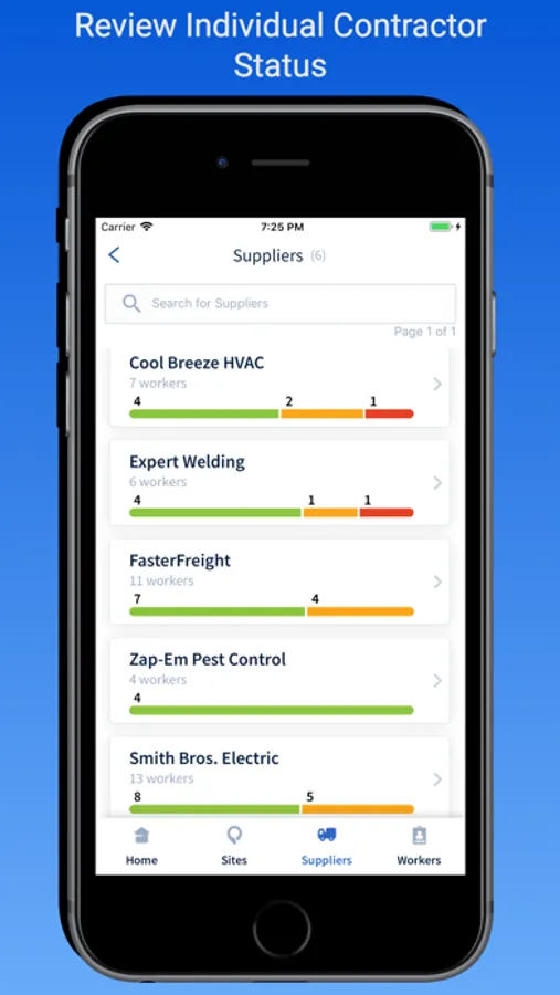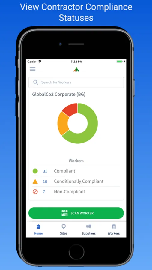 - View Contractor Compliance Statuses - Monitor the number of compliant, conditionally compliant, and non-compliant suppliers and workers
