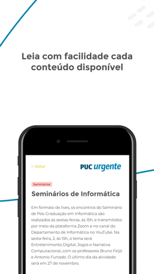 Fique por dentro da agenda da semana na PUC-Rio, saiba mais sobre as atividades no campus e conecte-se aos fatos da Universidade.