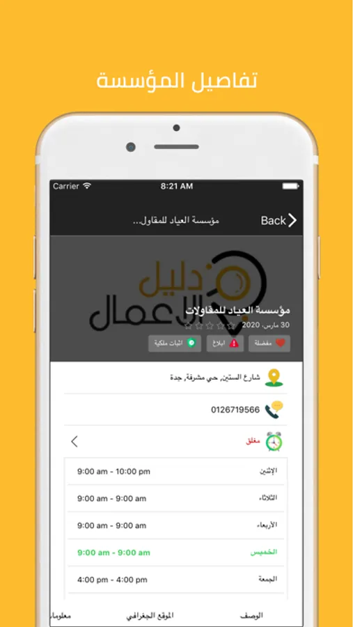 تستطيع ان تصل الى معلومات عن النشاطات التجارية الموجودة في موقع دليل الاعمال التجارية بكل سهولة وهذه البيانات تحتوي على ارقام التليفون واسماء الشركات السعودية وعناوين هذه الشركات والتصنيفات التجارية لهذه الشركات وخرائط لسهولة الوصول لهذه الشركات مع امكانية اضافة مراجعات وتعليقات على هذه الشركات السعودي كما ويمكنك التواصل مع هذه الشركات عن طريق الموقع بشكل احترافي.