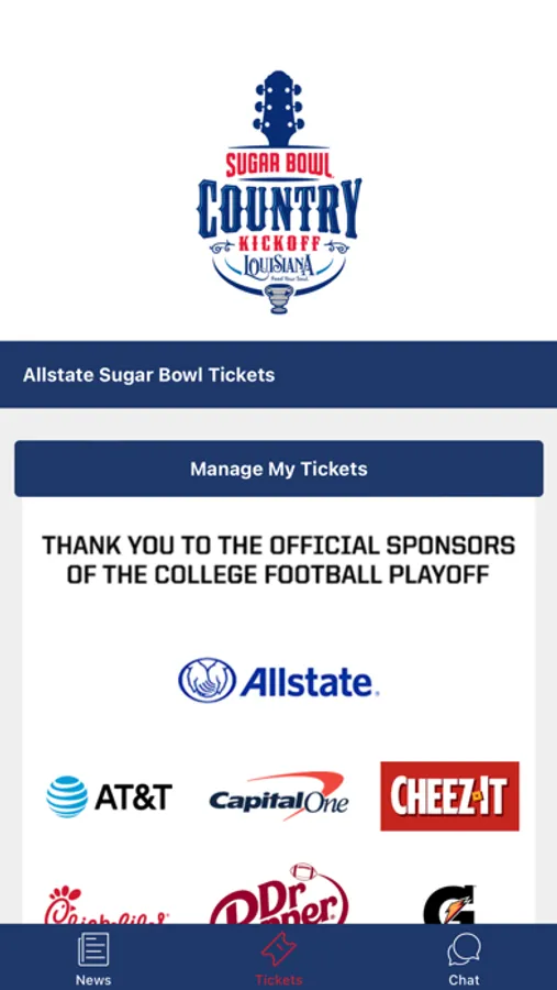 The Sugar Bowl Mobile app is a must-have for fans interested in the Sugar Bowl Country Kickoff music festival on Sept. 2, 2023. Not only does it include interactive social media, game-day policies, and parking info, but it’s the best way to access your mobile tickets for the event. The app will also serve the same purpose for the College Football Playoff Semifinal at the Allstate Sugar Bowl on Jan. 1, 2024.