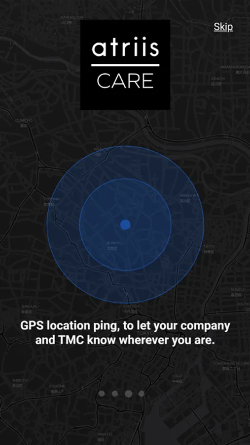 Atriis CARE allows you sending a GPS location ping, to let your company and TMC know whereever you are around the globe, to provide you with travel support and emergency assistance.