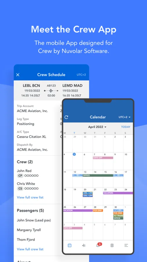 The Crew App is FlightWare’s mobile App for Crew designed by Nuvolar Software.