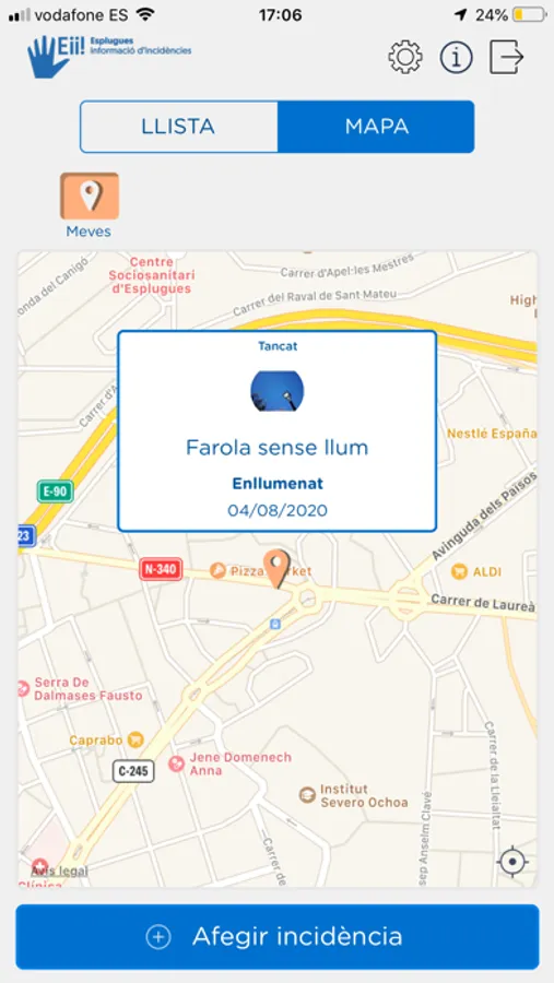 - ubicació de la incidència des del mapa