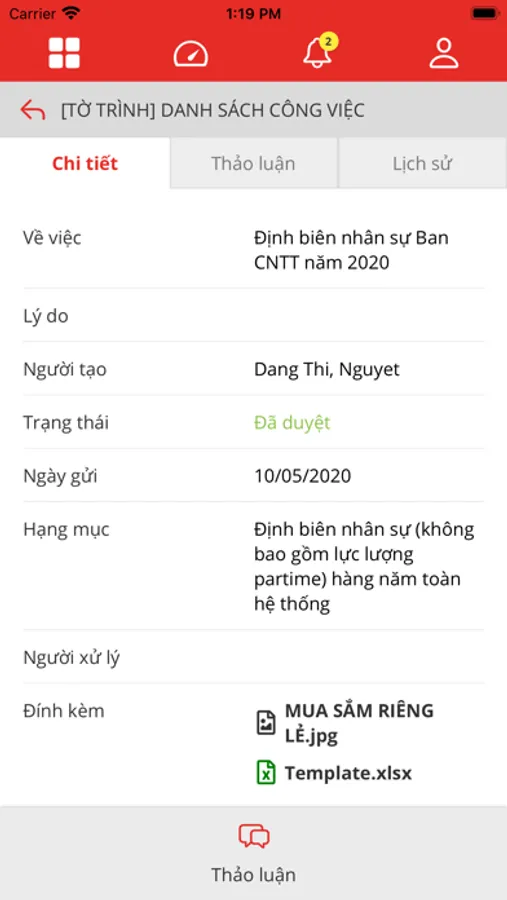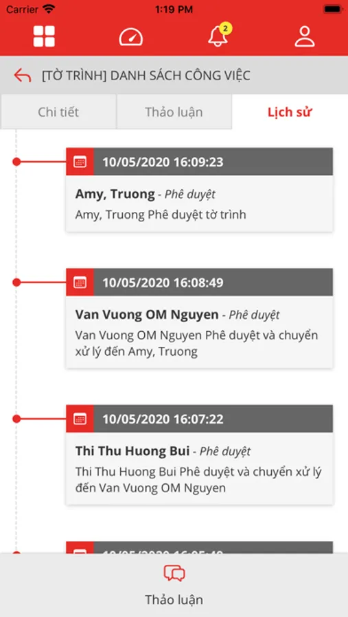 Ứng dụng quản lý công việc, nhắc việc và xử lý công việc theo quy trình đã được cấu hình.