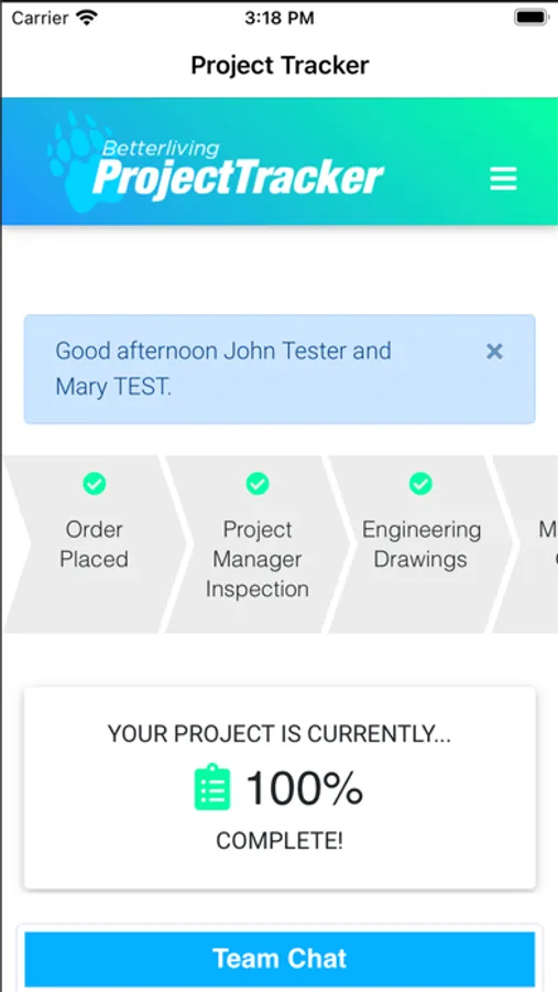 Check the status of your home improvement project anytime. This provides the best way to communicate with your project team and receive messages from them. View your project paperwork and payment status as well.