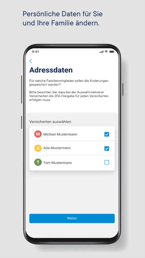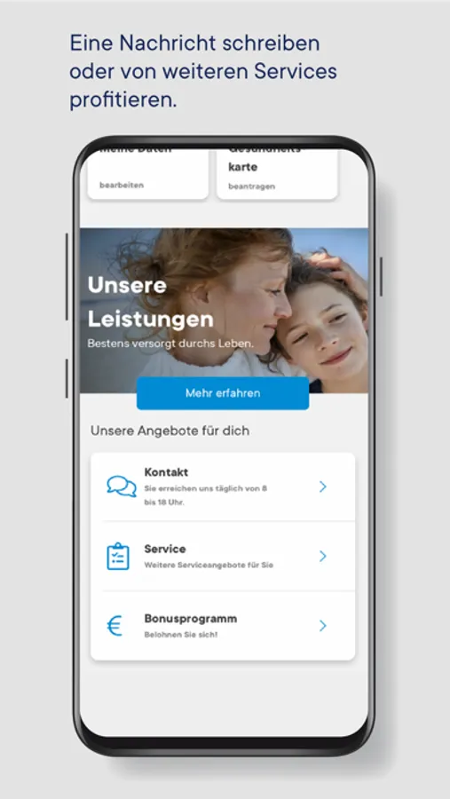 - Einsehen und ändern von persönlichen Daten (Adress-, Kontakt- und Bankdaten), auch von mitversicherten Familienmitgliedern