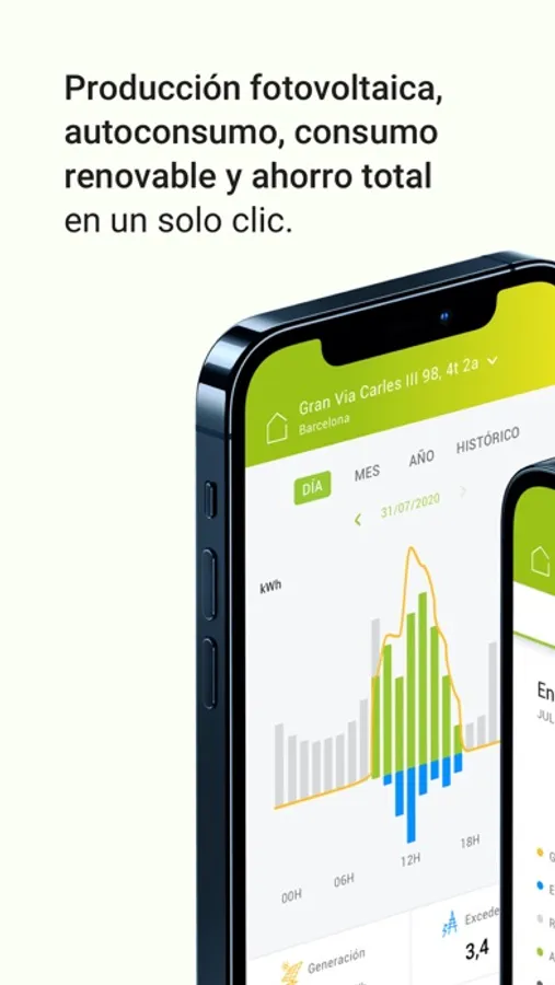 Producción fotovoltaica, autoconsumo, consumo renovable y ahorro total en un solo clic.