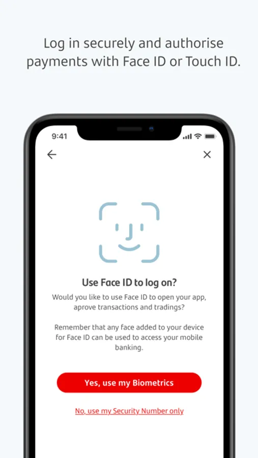 • Use Biometrics (e.g. Fingerprint) or your Security Number to quickly access your accounts.