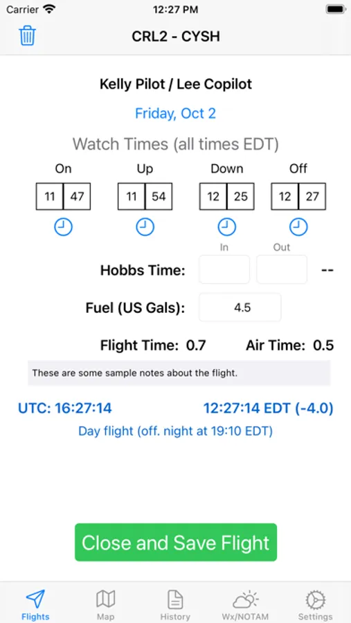- Record engine start, engine stop, wheels-up and wheels-down times, and automatically calculate air and flight times for multiple aircraft.