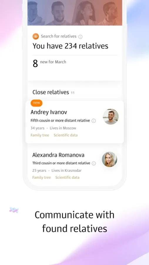 By agreeing to participate in the search for your relatives, you can find relatives up to a separation of ten generations.