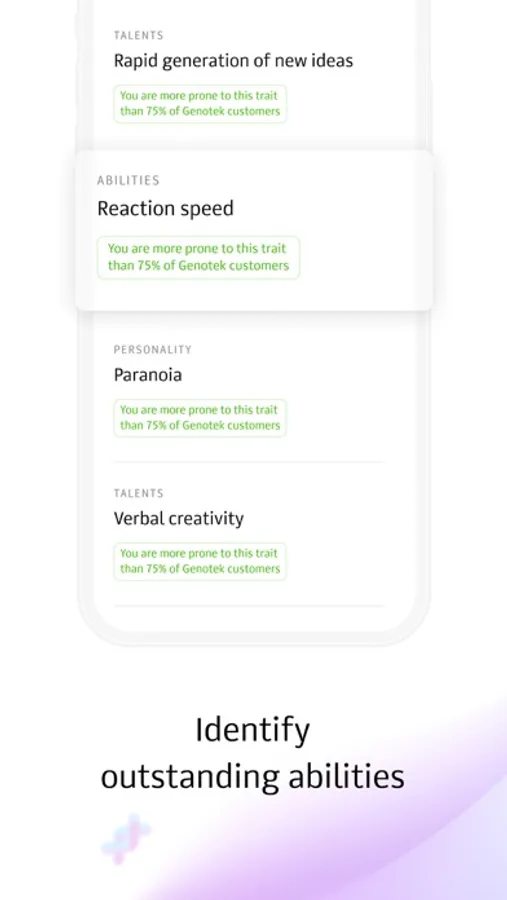 Genotek tests analyze thousands of genes responsible for health, longevity, diet characteristics, talents, ancestry, and reactions to medications. The resulting DNA profile allows specialists to personally develop recommendations for disease prevention, diet and lifestyle, as well as to determine a person’s ancestry, including the ethnic composition, and also to create a family tree.