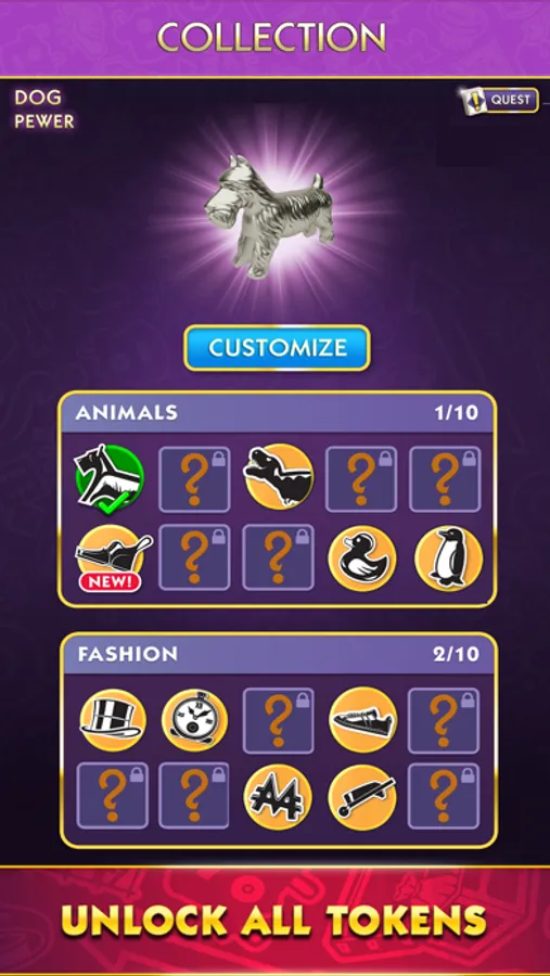 In MONOPOLY Solitaire, completing deals of solitaire earns dice rolls and MONOPOLY board game points to send players off on the chase for fortune. As you make your way around the board, collect properties to build houses and hotels as you establish your real estate empire. Progress through the game and avoid jail to unlock your favourite tokens from the actual MONOPOLY board game. With endless solitaire levels to complete, the fun is limitless!