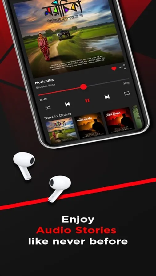 Audio Story: There are stories for all ages here, from the Classics to the New Age. The audience can discover a variety of genres such as thriller, comedy, romance, horror, detective, and crime. Now you can listen and experience the voice of eminent actor Biswanath Basu to musical artist Munmun Mukherjee and many others.